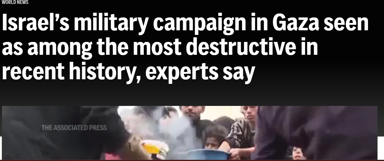 وقال بيب: "إن غزة هي واحدة من أشد حملات العقاب المدني في التاريخ، إنها تقع الآن بشكل مريح في الربع الأعلى من حملات القصف الأكثر تدميرًا على الإطلاق."