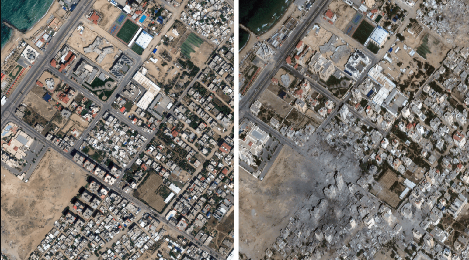 أدى الهجوم الإسرائيلي إلى تدمير أكثر من ثلثي المباني في شمال غزة وربع المباني في المنطقة الجنوبية من خان يونس، وفقًا لتحليل بيانات القمر الصناعي كوبرنيكوس سنتينل-1 الذي أجراه كوري شير من مركز الدراسات العليا في جامعة مدينة نيويورك وجامون فان دن. هوك من جامعة ولاية أوريغون، خبراء في رسم خرائط الأضرار أثناء الحرب.