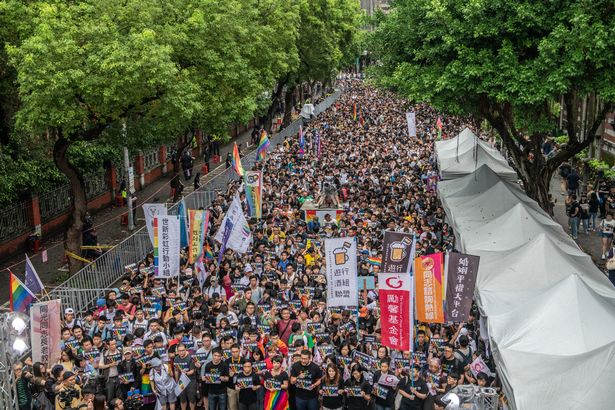 وقد احتشد المئات من أنصار حقوق المثليين تحت المطر خارج البرلمان في العاصمة تايبيه انتظارا لقرار البرلمان، وعقب الإعلان عن تمرير القانون انطلقت صيحات السعادة الممزوجة بالدموع!