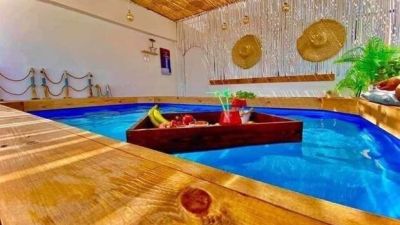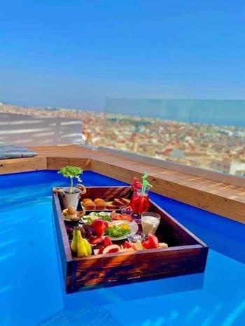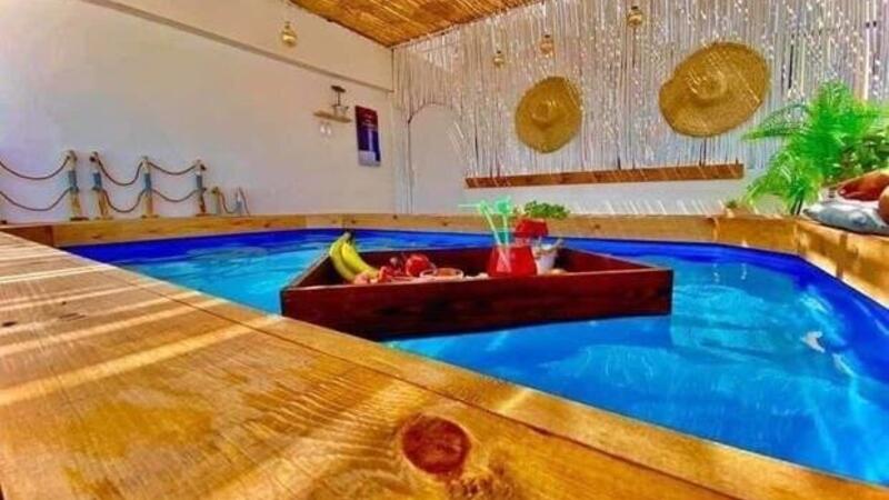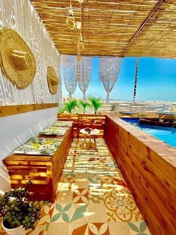 واستغل الشاب عز الدين مارسو مهارته في تصميم الديكور في تحويل سطح المنزل إلى مكان شبيه بالمسابح السياحية الراقية، عبر تزيين مسبح بلاستيكي يباع جاهزًا، وأضفى عليه تعديلات باستخدام الخشب، ومواد أخرى للتزيين.