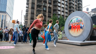 وحمل العمل الفني الجديد اسم "البوابة"، والتي تتيح سكان وزوّار نيويورك التواصل مباشرة مع سكان المدينة الأوروبية لحظة بلحظة، في مشهدٍ أشبه بالخيال.