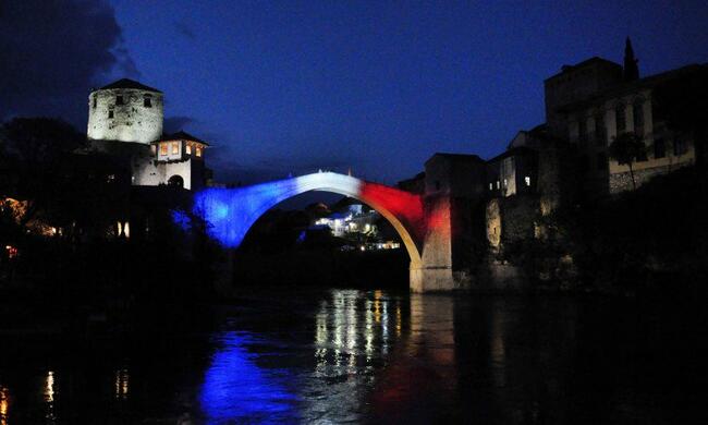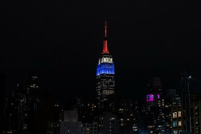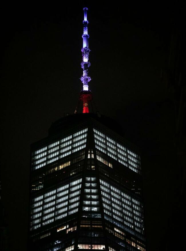 أضيئت مساء الثلاثاء مركز التجارة العالمي ومبنى "إمباير ستيت" بألوان العلم الفرنسي.