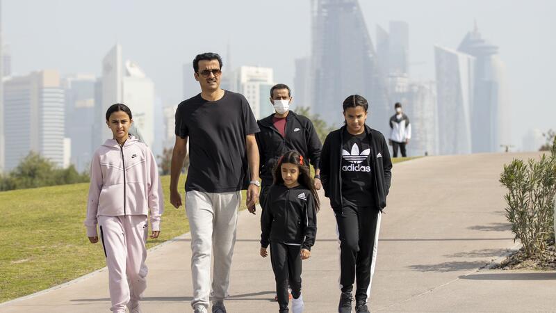 وشهدت المماشي والحدائق العامة والمتنزهات في العاصمة الدوحة مشاركات فردية منذ ساعات الصباح الأولى كان في مقدمتهم الأمير تميم بن حمد وعائلته اللطيفة.