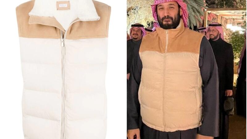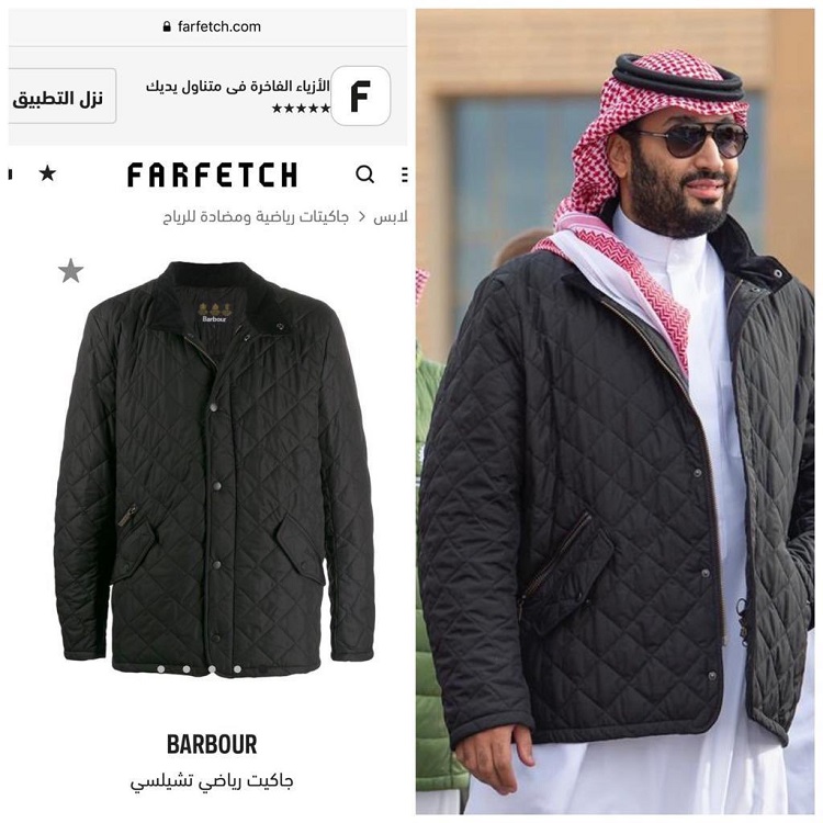 وبالبحث، تبين بأن جاكيت ولي العهد من علامة "برونيلو كوتشينيلي - Brunello Cucinelli1"، وهي هي ماركة أزياء إيطالية فاخرة تبيع الملابس الرجالية والملابس النسائية والإكسسوارات في أوروبا وأمريكا الشمالية وآسيا.