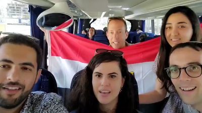 ويظهر المقطع الذي نشرته الصفحة التابعة لحكومة الاحتلال على "تويتر" الناشط المصري ـ الأمريكي المُطبع حسين أبو بكر منصور، وهو يشارك الصهاينة غناء أغنية عمرو دياب داخل حافلة رحلات بتل أبيب.