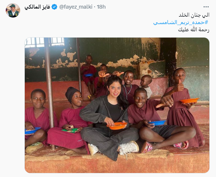 كما نعى الفنان السعودي فايز المالكي الشابة الراحلة وكتب عبر حسابه على إكس": "إلى جنات الخلد".