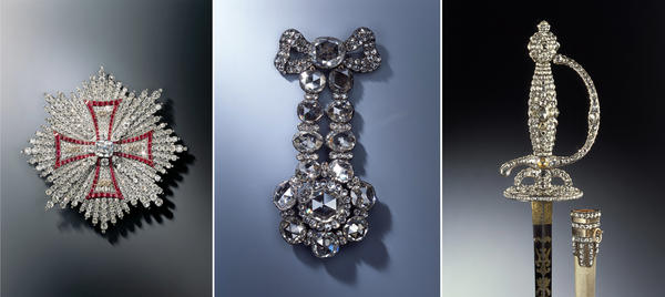 ومن أبرز المعروضات تمثال مرصع بالزمرد وبقطعة من الياقوت الأزرق، وهو هدية من القيصر الروسي بطرس الأكبر.