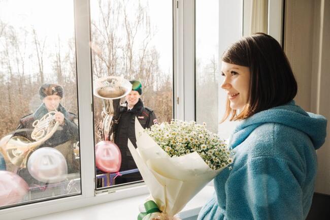وتوجهت بعض دوريات الشرطة مع فرقة موسيقية تابعة لوزارة الداخلية الروسية إلى دور التوليد في موسكو، حيث أحيت بعض الحفلات، وقدم عناصر الشرطة الورود للأمهات.