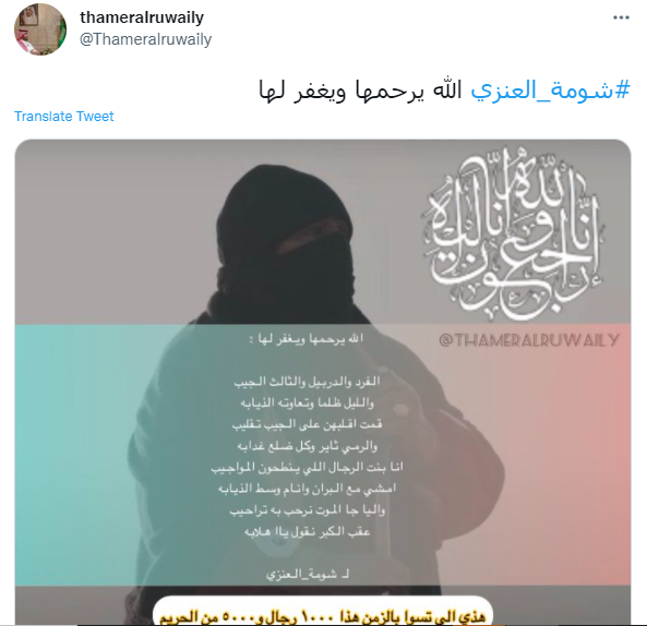 كما امتلأت صفحات التواصل الاجتماعي بقصائد شومة العنزي التي ستظل حيّة للأبد رغم وفاة مؤلفتها.