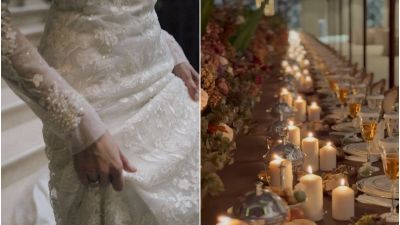 وأظهرت اللقطات تفاصيل الحفل الدقيقة والمليء بالديكورات الفخمة، والتي تعكس شخصية العروس الراقية، وفخامة اختياراتها.