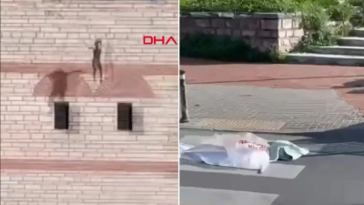 وأظهرت اللقطات المتداولة في منصات التواصل الاجتماعي، لحظة إلقاء الشاب أجزاء من جسد الفتاة المقطعة، قبل أن يلقي بنفسه من فوق سور القلعة "أدرني كابي".