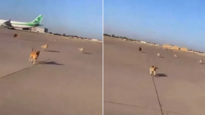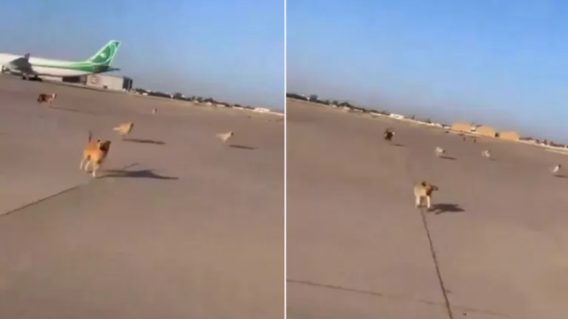 وأظهرت اللقطات المتداولة في منصات التواصل الاجتماعي، وتحديدًا منصة "إكس"، الكلاب الضالة وهي تجوب مدرجات المطار الدولي على مقربة من الطائرات المتوقفة وتلاحق حافلات وسيارات بالمطار.