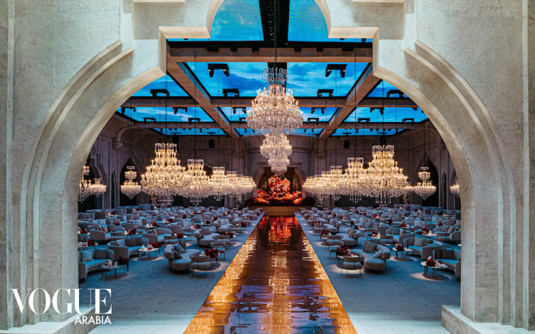 وقاد تصميم الحفل استوديو Designlab Experience، الذي حوّل قاعة تشبه الصندوق الأسود إلى قصر معماري مهيب. الزفاف قُسّم إلى ثلاثة فصول، حيث استمتع الضيوف بمشاهد طبيعية خلابة تزينها الزهور الحمراء والموسيقى الراقية.