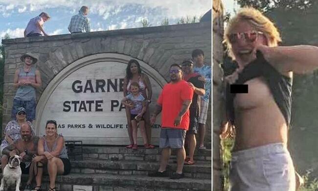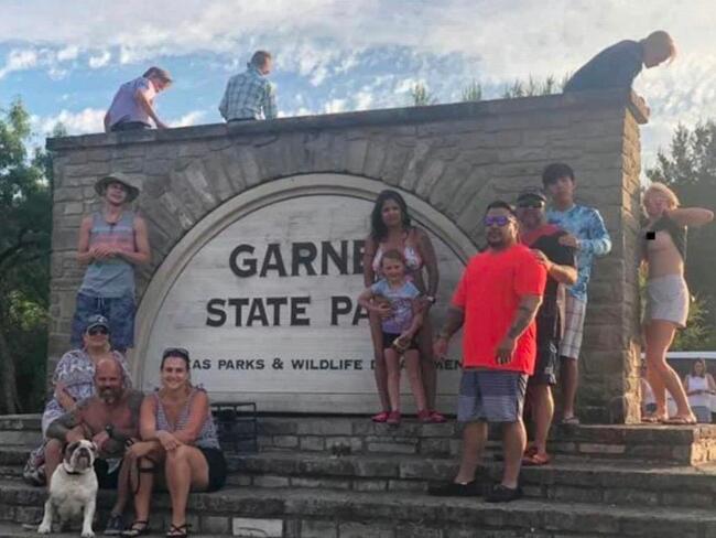 ءقررت سيدة إفساد صورة عائلية التقطت في متنزه حكومي بتكساس، بعد تعمدها الكشف عن صدرها في الخلفية.