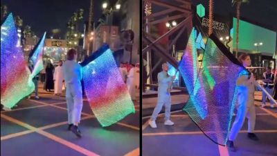وتعمّد مروجو الشائعات تداول مقطع فيديو ظهر فيه ثلاثة أشخاص يحملون أعلامًا مُضيئة بألوان علم الفخر، الذي يستخدمه مجتمع الشواذ رمزًا لهم.