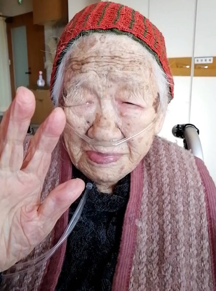 وفقًا لشبكة CNN، فإن أكبر معمر على قيد الحياة في العالم هي كين تانانكا، البالغة من العمر 119 عامًا، كما صرحت حفيدة لها على موقع "تويتر" في 1 يناير حين احتفلت بيوم ميلادها.