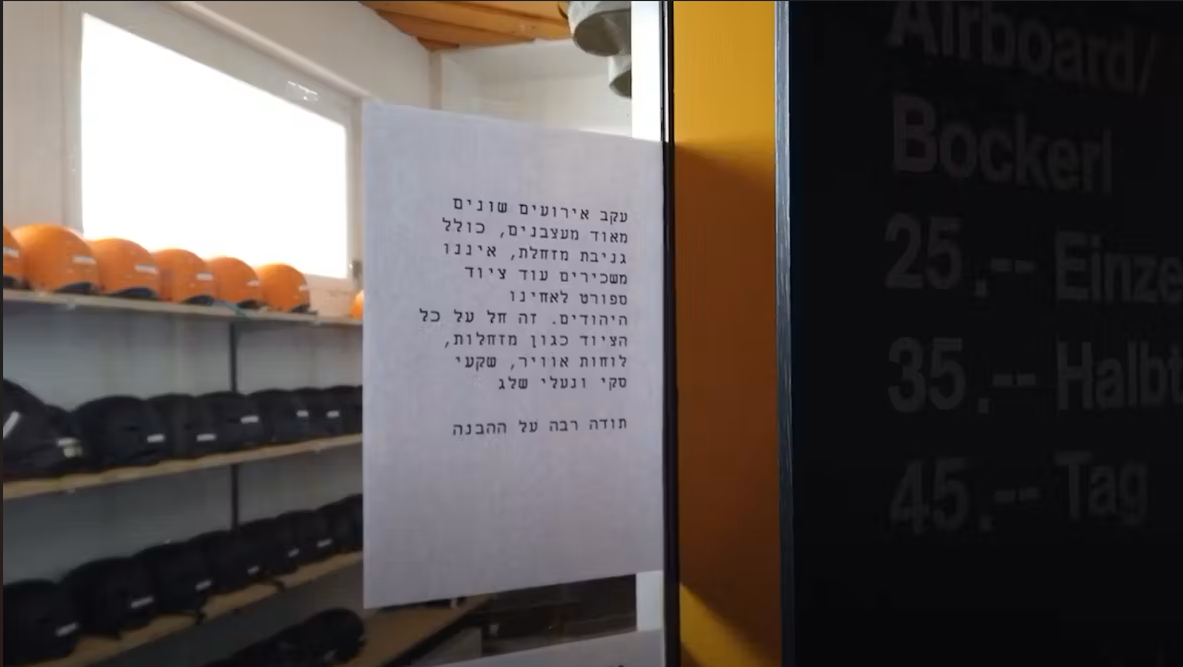 وعلّقت إدارة المطعم إشعارًا كبيرًا على بوابته الرئيسية كُتب عليها باللغة العبرية: "يؤسفنا إخباركم أنه بسبب تكرار عمليات سرقة الزلاجات من قبل اليهود فإننا لن نبيع أو نؤجر لهم تلك المعدات، وينطبق هذا على جميع المعدات الأخرى مثل الألواح الهوائية ورافعات التزلج وأحذية الثلوج، شكرا لتفهمكم".