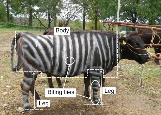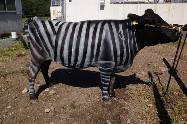 توصل باحثون زراعيون في اليابان الى تقنية "صديقة للبيئة" من أجل حماية الأبقار من لدغات الحشرات والذباب برسم خطوط بيضاء وسوداء على أجسادها.