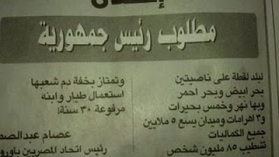 إعلانات مبوبة: مطلوب رئيس جمهورية