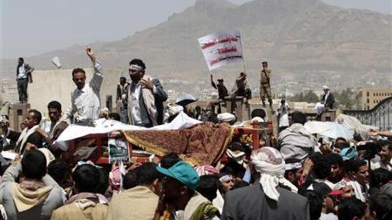 وكان ثلاثة أشخاص قتلوا وأصيب 15 يوم الجمعة عندما أطلق جنود النار على محتجين في مدينة اب الواقعة جنوبي العاصمة صنعاء ليرتفع بذلك عدد القتلى الى 170 شخصا منذ بدء الاحتجاجات.