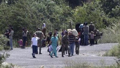 وقال الرجل الذي عرف نفسه باسم ابو فادي "منطقة الحدود تحولت عمليا الى منطقة عازلة. الاسر أوت تحت الاشجار وهناك ما بين سبعة الاف وعشرة الاف شخص هنا الان."