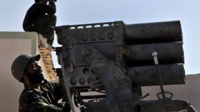 احد الثوار الليبيين يوجه قاذفة صواريخ في بن جواد