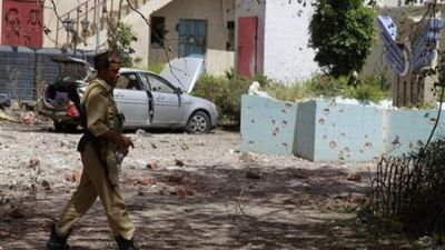 جندي امام وكالة انباء سبأ اليمنية الحكومية التي اصيب مبناها باضرار جراء اشتباكات اندلعت مؤخرا بين الشرطة ومسلحين قبليين في صنعاء