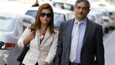 الصحفية البحرينية ريم خليفة وزوجها منصور الجمري رئيس تحرير صحيفة الوسط البحرينية السابق لدى وصولهما الى محكمة في المنامة