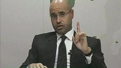 قال سيف الاسلام نجل الزعيم الليبي معمر القذافي في مقابلة مع التلفزيون الفرنسي إن الدول الغربية محكوم عليها بالفشل في حملتها العسكرية التي تهدف إلى اسقاط القذافي وإن غاراتها الجوية ضد القوات الحكومية جعلها "أهداف مشروعة".