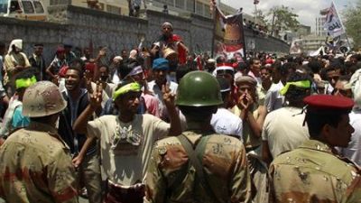 ولم تشهد هذه التظاهرات التي جرت وسط تدابير امنية مشددة، اعمال عنف وتفرق المشاركون فيها بهدوء ميدانيا، قتل رجلان مسلحان ليل الخميس الجمعة في تبادل لاطلاق النار مع قوات الامن اليمنية في جنوب اليمن، حسبما افادت مصادر امنية يمنية. وقال مسؤول امني ان رجلا مسلحا قتل واصيب اخر بجروح على يد جنود لدى محاولتهم رمي قنبلة على احد فنادق عدن.