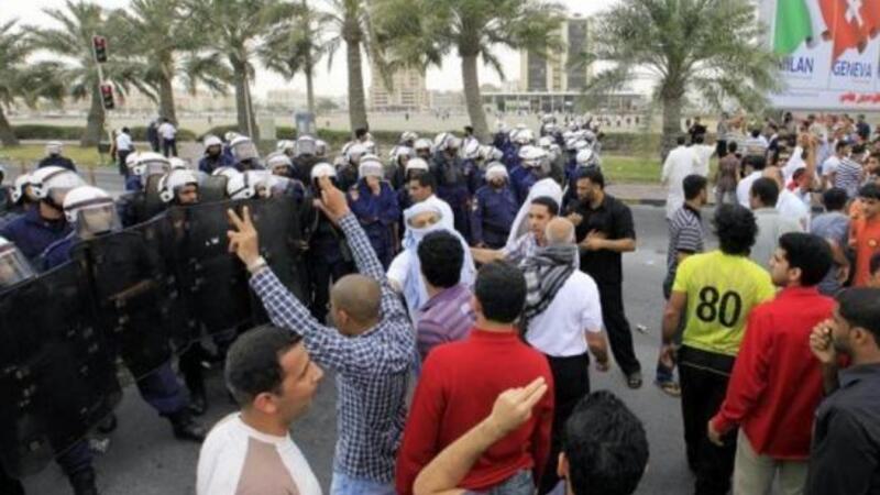 ووقعت مواجهات قوية في وقت سابق الاحد عندما قامت قوات الامن البحرينية بتفريق معتصمين بالقرب من المرفأ المالي في المنامة، حسبما افاد شهود عيان ووزارة الداخلية التي اشارت الى سقوط 14 جريحا في صفوف رجال الامن. لكن المعتصمين تمكنوا من استئناف اعتصامهم في وقت لاحق.