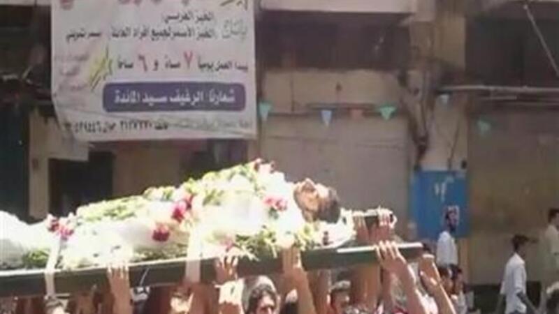متظاهرون يحملون جثة متظاهر قتل في حمص