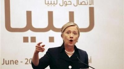 في غضون ذلك، قالت وزيرة الخارجية الامريكية هيلاري كلينتون يوم الخميس ان المحادثات جارية مع أشخاص قريبين من معمر القذافي وانه توجد "إمكانية" لنقل السلطة في ليبيا.