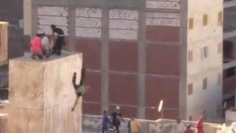 بث ناشطون مقطع فيديو أمس السبت قالوا إنه لعناصر من جماعة الإخوان المسلمين، وهم يلقون شخصين من أعلى سطح إحدى البنايات في منطقة سيدي جابر بمحافظة الإسكندرية. ولم يتسن لـ «العربية.نت» التأكد من هوية الفاعلين، إلا أن المشهد كان صادماً ومثيراً للجدل في أوساط المجتمع المصري.