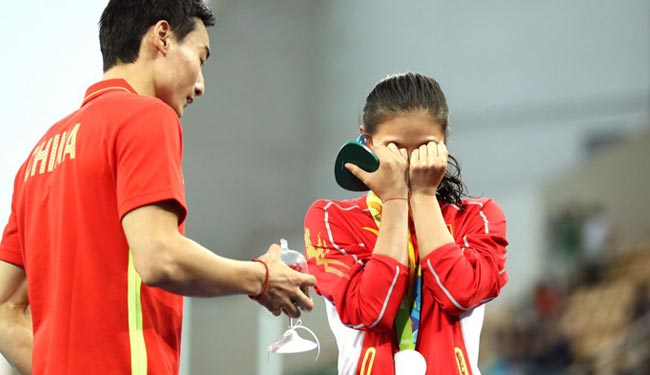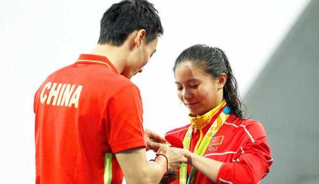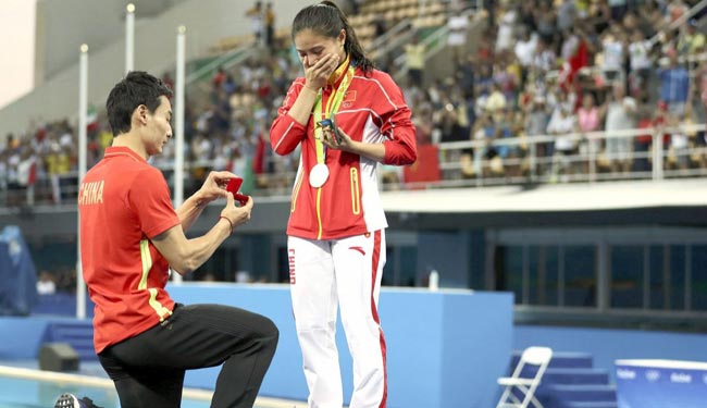 شهدت مراسم التتويج بميداليات الغطس من السلم المتحرك على ارتفاع 3 أمتار للسيدات في ريو حدثا طريفا حيث قبلت الصينية هي زي الفائزة بالميدالية الفضية خاتم الخطوبة. وبعد إحراز الغطاسة هي 24 عاما الميدالية الفضية المركز الثاني تقدم الغطاس الصيني كين كاي لخطبتها مقدما لها خاتم الخطوبة.