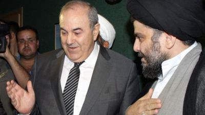 مقتدى الصدر (يمين) واياد علاوي خلال لقائهما في دمشق لبحث تشكيل الحكومة