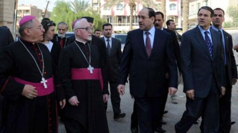 دعا رئيس الوزراء العراقي المنتهية ولايته نوري المالكي الثلاثاء خلال تفقده الكنيسة التي تعرضت لاعتداء في بغداد الاسبوع الماضي الى عدم التشجيع على هجرة المسيحيين من العراق.