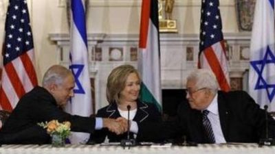 كما كرر الرجلان، اللذان عقدا اجتماعا منفردا في واشنطن بعد لقاء ثلاثي مع وزيرة الخارجية الاميركية هيلاري كلينتون، هدفهما المشترك المتمثل في قيام دولتين لشعبين.