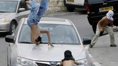 ويظهر تسجيل فيديو على الانترنت بث الجمعة طفلين فلسطينيين ملثمين يحملان حجارة وعندما يقترب احدهما من سيارة المستوطن يقوم الاخير بدهسه بسيارته قاذفا به الى اعلى قبل ان يقع ارضا ويفر السائق بسيارته.
