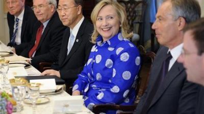 واستضافت وزيرة الخارجية الامريكية هيلاري كلينتون الاجتماع على العشاء الذي حضرته منسقة السياسة الخارجية للاتحاد الاوروبي كاثرين اشتون ووزير الخارجية الروسي سيرجي لافروف والامين العام للامم المتحدة بان جي مون ورئيس الوزراء البريطاني السابق توني بلير مبعوث الرباعي.