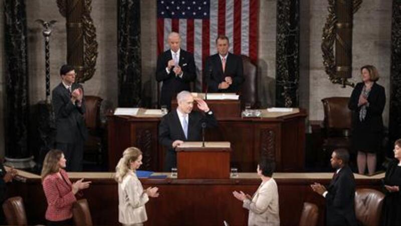 اكد رئيس الوزراء الاسرائيلي بنيامين نتانياهو الثلاثاء امام الكونغرس الاميركي ان اسرائيل لن تعود الى حدود 1967 او تقبل بتقسيم القدس، فيما اعتبرت السلطة الفلسطينية ان رؤيته هذه تضع مزيدا من "العقبات" أمام عملية السلام.