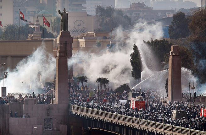 تاريخ النشر: 30 يناير 2011 - 01:38 GMT يوم غضب في مصر فالشعب يريد إسقاط النظام. عرض كشريط عرض كقائمة قوات الأمن تجبر المتظاهرين المصريين على التراجع أثناء سيرهم على كوبري قصر النيل أثناء محاولتهم الوصول إلى ميدان التحرير في القاهرة. متظاهرون يعتلون مدرعة حاملة للجنود متجهة نحو نهر النيل. المتظاهرون يفرون من قنابل الغاز في ميدان التحرير. متظاهرون يحملون رجلا أصيب خلال مواجهات مع قوات الأمن المركزي قرب ميدان التحرير. متظاهرون يحملون ضابطا في الجيش المصري على أكتافهم بعد أن مزق صورة للرئيس مبارك. المتظاهرون يصافحون جنودا من الجيش المصري خلال إحدى المظاهرات. متظاهرون يتعرضون للرش بالماء أمام مسجد الاستقامة. سحب الدخان الأسود تتصاعد عند نهاية اليوم. مدرعة تابعة للجيش المصري تقف بجانب بقايا حاملة جنود محترقة في ميدان التحرير. مصري يقف على الجسر وينظر إلى مبنى حكومي محترق. رجل مصري ينهب جهاز حاسوب من مقر محترق تابع للحزب الوطني الحاكم. أشخاص يدفعون كرسيا قاموا بنهبه من مبنى محترق تابع للحزب الوطني الحاكم. مدرعات تابعة للجيش المصري تصطف في ميدان التحرير في القاهرة. Previous التالي Previous التالي قوات الأمن تجبر المتظاهرين المصريين على التراجع أثناء سيرهم على كوبري قصر النيل أثناء محاولتهم الوصول إلى ميدان التحرير في القاهرة. متظاهرون يعتلون مدرعة حاملة للجنود متجهة نحو نهر النيل. المتظاهرون يفرون من قنابل الغاز في ميدان التحرير. متظاهرون يحملون رجلا أصيب خلال مواجهات مع قوات الأمن المركزي قرب ميدان التحرير. متظاهرون يحملون ضابطا في الجيش المصري على أكتافهم بعد أن مزق صورة للرئيس مبارك. المتظاهرون يصافحون جنودا من الجيش المصري خلال إحدى المظاهرات. متظاهرون يتعرضون للرش بالماء أمام مسجد الاستقامة. سحب الدخان الأسود تتصاعد عند نهاية اليوم. مدرعة تابعة للجيش المصري تقف بجانب بقايا حاملة جنود محترقة في ميدان التحرير. مصري يقف على الجسر وينظر إلى مبنى حكومي محترق. رجل مصري ينهب جهاز حاسوب من مقر محترق تابع للحزب الوطني الحاكم. أشخاص يدفعون كرسيا قاموا بنهبه من مبنى محترق تابع للحزب الوطني الحاكم. مدرعات تابعة للجيش المصري تصطف في ميدان التحرير في القاهرة. مواضيع ممكن أن تعجبك الاشتراك اشترك في النشرة الإخبارية للحصول على تحديثات حصرية ومحتوى محسّن إشترك الآن الأحدثترند تفسير حلم العرس في المنزل بدون عريس حظك اليوم الإثنين 19 يناير/ كانون الثاني 2026 تعهد أميركي بفرض رسوم جمركية على 8 دول أوروبية بسبب غرينلاند اتهامات إيرانية له بالتحريض.. ترامب: حان الوقت لتغيير القيادة أفكار هدايا للزملاء في عيد الحب Loading content ...
