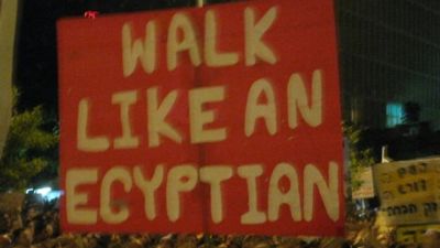واحدة من اللافتات التي رفعها المتظاهرون في إسرائيل وقد كتب عليها: "امش مثل مواطن مصري"!.