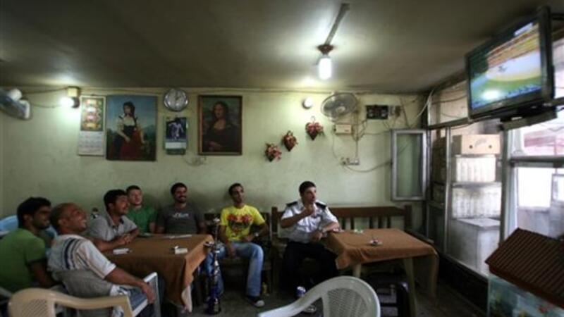 عراقيون يتابعون حفل افتتاح المونديال في احد مقاه بغداد الخميس/أ.ف.ب