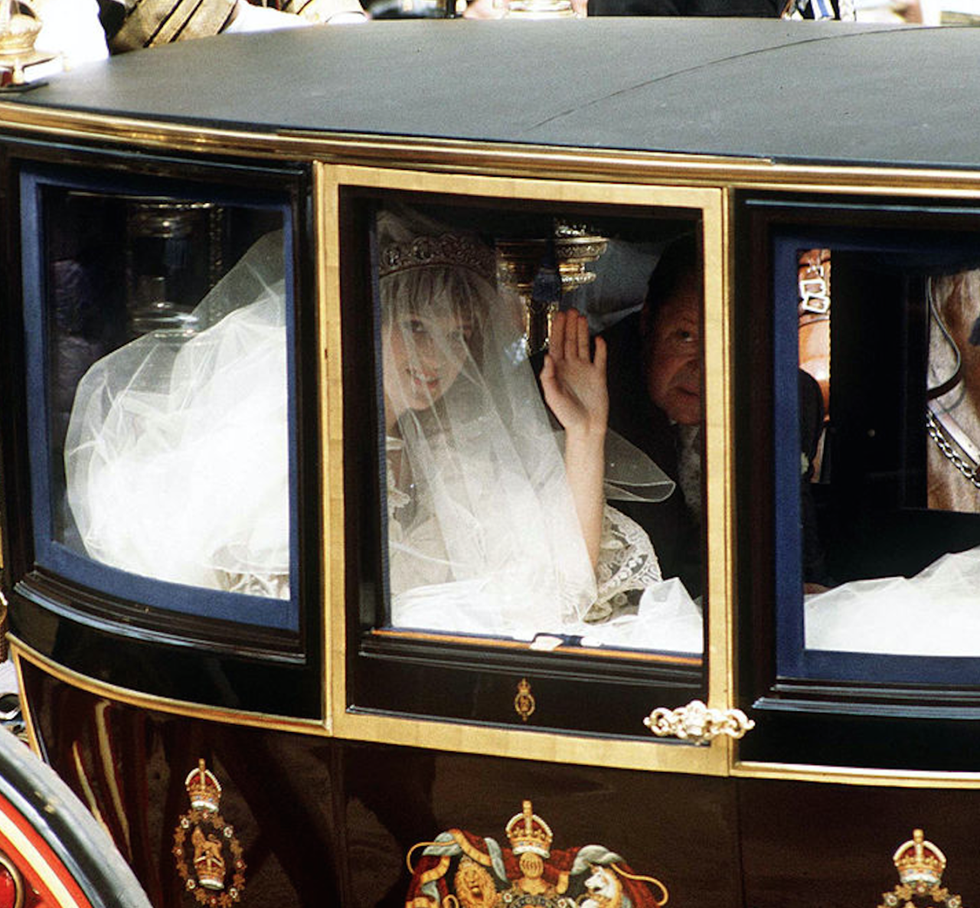 كان فستان ديانا الكبير للغاية، بكل ما فيه من قماش ال"تافتا" وقطاره الذي يبلغ طوله أكثر من 7 أمتار، بالكاد يتناسب مع العربة الزجاجية التي كانت تنتظرها مع والدها. وقالت إليزابيث إيمانويل، إحدى صانعات الفستان، لصحيفة ديلي ميل إن الفستان كان يجب أن يتم طيه من قبل وصيفات العروس الملكية حتى يتناسب مع الداخل ولسوء الحظ، كان الثوب مجعدا بشدة وكان لا بد من كيه".
