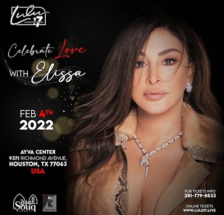إليسا التي أحيت حفلا غنائيا بجزيرة المارية بأبو ظبي، بمشاركة الفنان الإماراتي حسين الجسمي، والفنانة اليمنية بلقيس فتحي، أعلنت منذ أيام عن جولة غنائية لها في أمريكا في شهر فبراير/شباط المقبل، ونشرت بوستر الحفلات على حسابها على (انستغرام)، وتحيي إليسا الحفل الأول لها في هيوستن في الرابع من فبراير/شباط، والحفل الثاني في سان دييغو في الخامس من فبراير/شباط، والحفل الثالث في ديترويت في 11 فبراير/شباط، والحفل الأخير في 12 فبراير/شباط المقبل.