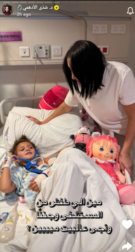 قبل ما يقارب اليوم شاركت الأدهمي عبر حسابها الخاص أول فيديو لابنتها عفاف من داخل المستشفى بعد خروجها من العناية المركزة.