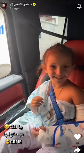 وكشفت الأدهمي عن تحسن الحالة الصحية للطفلة البالغة من العمر 6 سنوات، والتي تعرضت لحادثة سقوط.