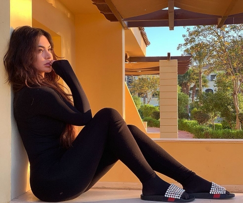 وظهرت قمر بملابس سوداء، وشعر كيرلي، وحازت الصور على إعجاب جمهورها ومتابعيها.