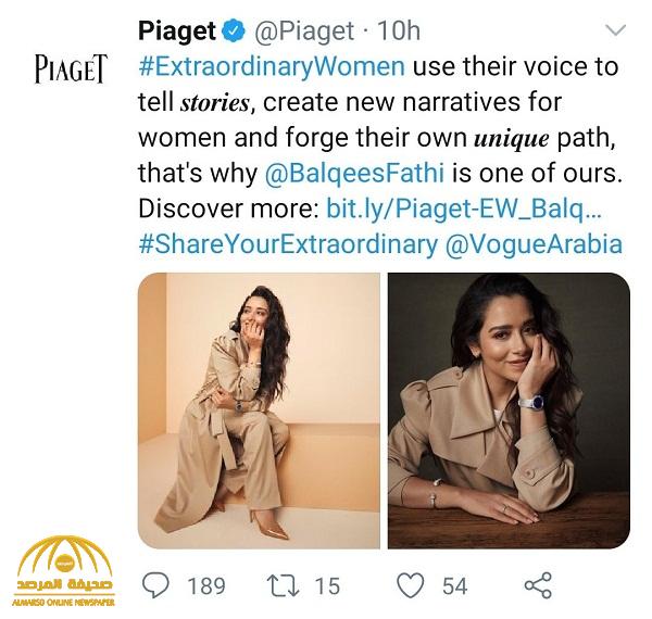 وكانت بلقيس فتحي قد عبرت عن سعادتها كونها الوجه العربي الوحيد الذي تم اختياره من قبل مجلة "Piaget"، مؤكدة بأنها تشعر بالفخر كونها تمثّل العرب بهذه المجلة العالمية المختصة في عالم المجوهرات.